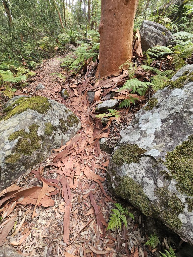Conditions: Steep downhill and uphill fire trail sections, narrow bush tracks with many steps, rocks and tree roots. A good degree of sure footedness is required.